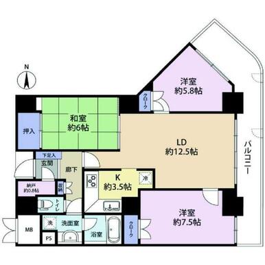 | 間取り(内訳) | 3LDK(和6洋7.5/5.8LDK16) | ||